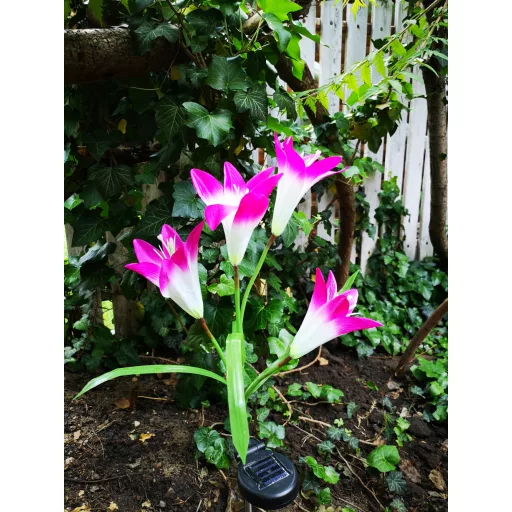 Tegye egyedivé, színessé, fényűzővé kertjét ezzel a színes Lily napelemes kerti lámpával amik esténként színesebb fényben világítanak mint a virágok.