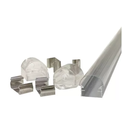 Alumínium Led profil sín, alusín szett, íves átlátszó burával, 8-10 -12 mm-es Led szalaghoz /3528-2835-5630-5730 chip/. 1 méter sín + 1 méter átlátszó takaró + 2 db rögzítő+ 2 db végzáró. Magasság 12 mm, búra szélesség 14,4 mm. Az alusín eloxált felületű, könnyen tisztítható és ujjlenyomattól mentes! Tegye exkluzívvá üzletét vagy otthonát Design alusínnel, akár fővilágításnak is alkalmazható az 5630, vagy a 240 ledes Led szalagjainkkal!